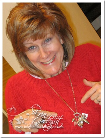 Erin, thanks again for putting together such a fun class. It was certainly nice to create something no paper-based. I've already worn my 'junklace' a few times, and have receive compliments on it every time. The special engraved CU charm is very impressive.